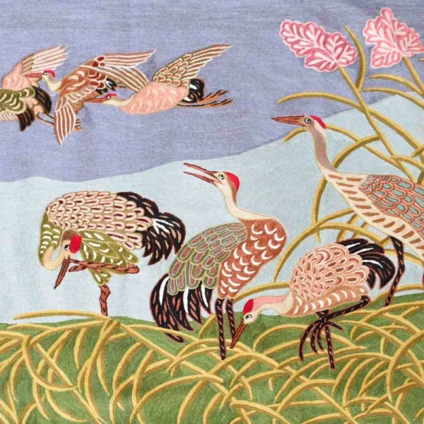 Artisanal Craftsmanship: Every stitch is a testament to skill, with finely detailed feathers and foliage bringing the scene to life