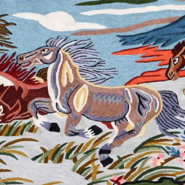 Masterful Embroidery: Each horse’s mane, muscle, and movement is brought to life with meticulous stitching